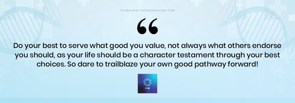 “Do your best to serve what good you value, not always what others endorse you should, as your life should be a character testament through your best choices,” he says.